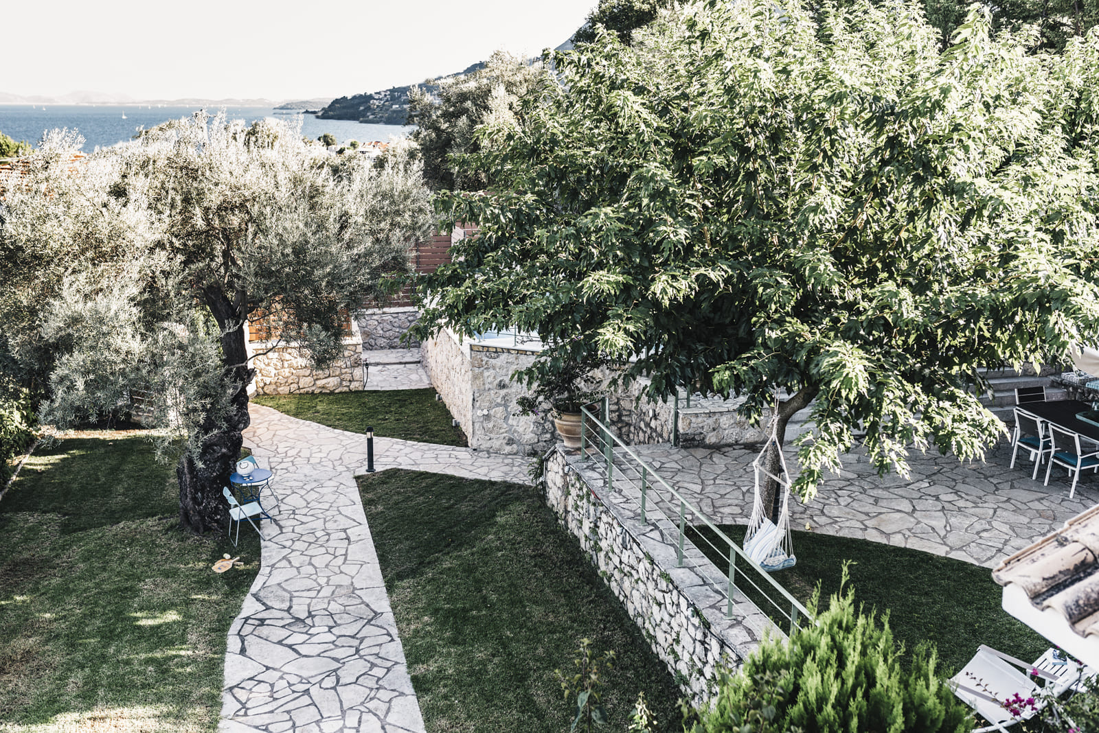 Villa Rosebud is a family owned villa, offering relaxing accommodation in Lefkada. It is located in the coastal village of Nikiana, Lefkada and it is built on a small hill, 100 meters away from the nearest beach. Nikiana, is a picturesque fishing village on the East coast of Lefkada, between the capital of the island (9 kilometres away) and Nydri (7 kilometres away). Nikiana is built at the foot of the Skaros Mountain and the last few years has become a popular tourist resort, especially for families. Villa Rosebud is a brand new place, opened in 2015. It consists of two private properties, the main Villa and the Apartment. Both properties are east facing with a breathtaking Ionian sea view and they have their own, full of flowers, gardens. The interior design of Villa Rosebud along with the outstanding gardens is a result of the owner’s love for nature and decoration. The entire property was built very carefully with a profound respect for mother nature. A big olive tree, more than 100 years old dominates the yard and the stone, the main material of the plot, used in order to decorate outdoor walls and yard.