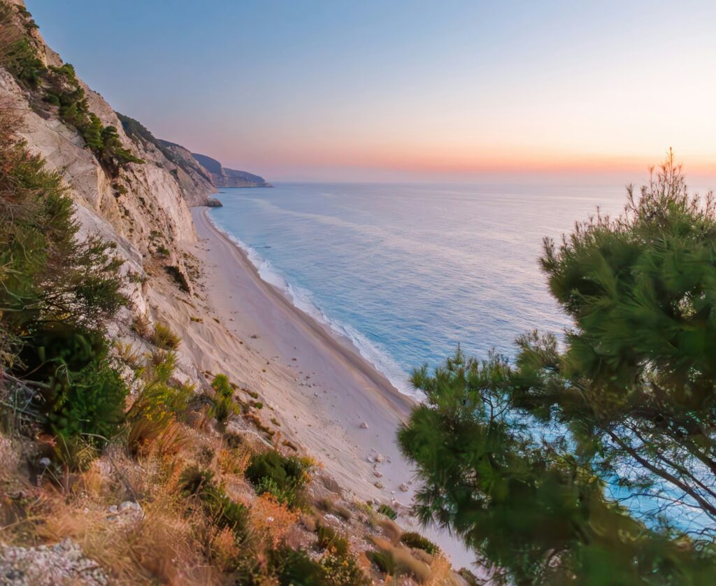 One of Greece’s most iconic beaches, Porto Katsiki is famous for its turquoise waters and towering cliffs. Arrive early for soft morning light or stay until sunset for breathtaking golden hues.